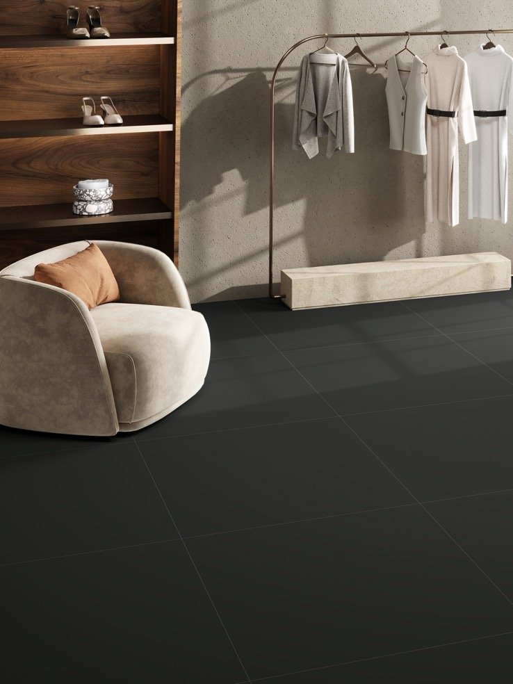 Nero brings a bold, architectural clarity to every interior with its deep, refined black tone. The matt finish softens the surface, creating a smooth, modern character that works effortlessly in retail, hospitality, and premium lifestyle spaces. Its rich depth enhances contrast and elevates surrounding materials, offering a surface that feels confident, minimal, and timelessly sophisticated.